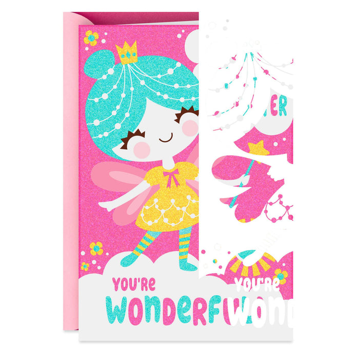 Share a magical happy birthday message with your great-granddaughter when you give this glittered greeting. Birthday card features simple shapes in vibrant colors that create a fairy design she'll love.- Vendor