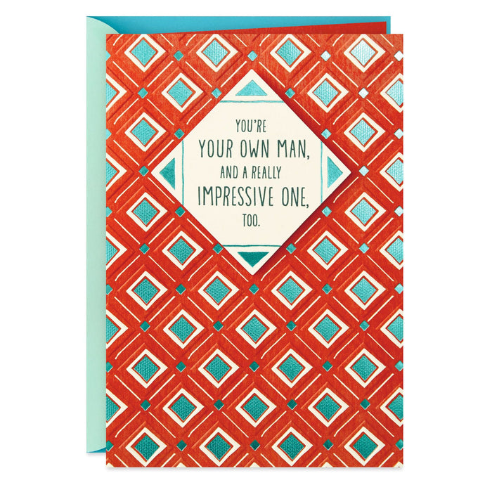 Celebrate your son's birthday with this colorful geometric birthday greeting. Card features a beautifully written message for a son with embossed and foil accents and a raised attachment echoing the card's geometric design.- Birthday greeting card features die-cut attachment, embossing and foil.