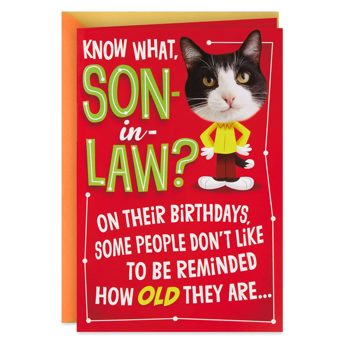 Let your son-in-law know he's the cat's meow with this humorous pop-up birthday greeting that focuses on all the things that make him great—instead of pointing out how old he is! Remind him that he's terrific, cool, the best and more with this fun die-cut card that features a feline in full-on celebration.- Birthday greeting card features die-cut pop-up design.