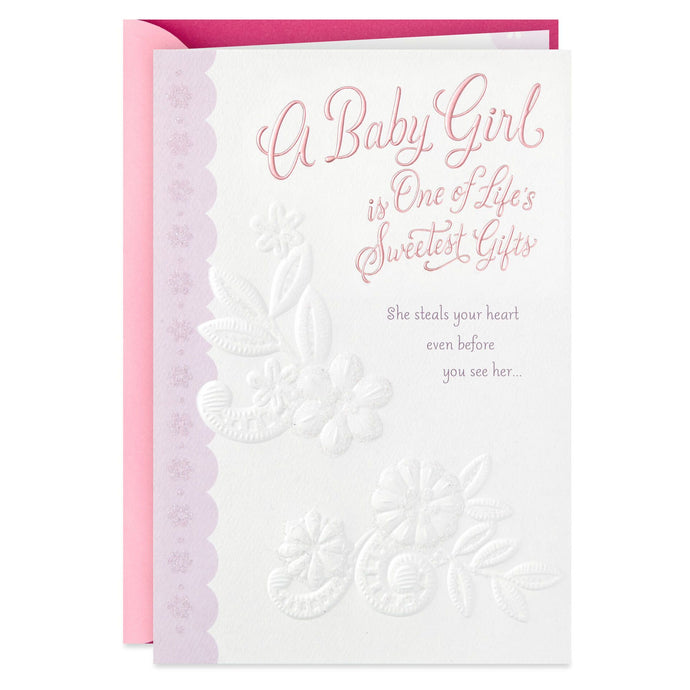 Life's Sweetest Gift Flowers and Swirls New Baby Girl Card