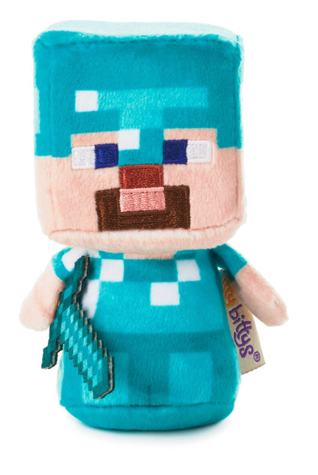 Explore an open world with endless possibilities for adventure when you add this Minecraft itty bittys to your collection. Players will love the pixelated design of this stylized plush version of the iconic player avatar Steve decked out in one of the most protective and durable armors, the Diamond Armor, with Diamond Sword in hand. Makes a great gift for Minecraft fans and gamers.