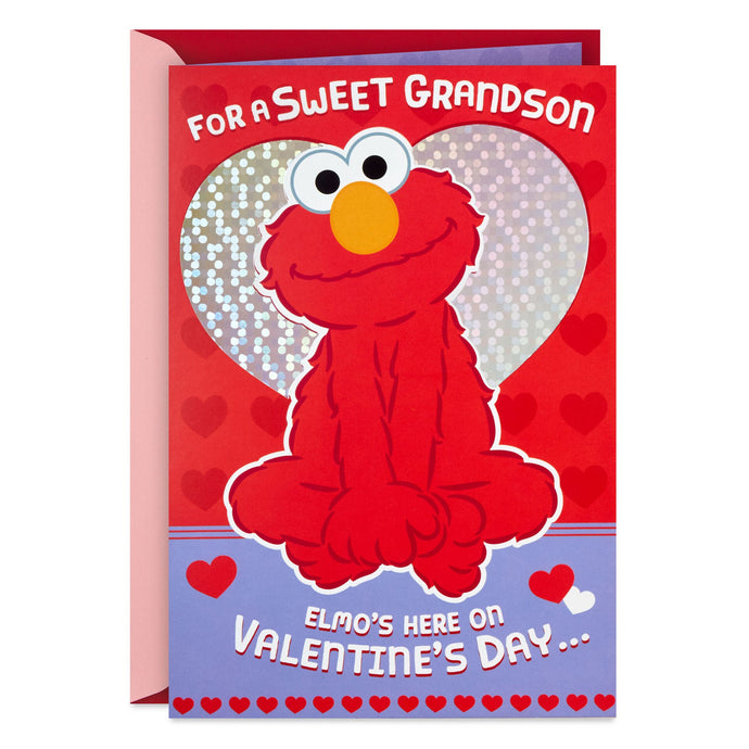 Elmo Valentine's Day greeting card for grandson features heart designs and the loveable red monster from "Sesame Street" sharing a hug. Prismatic foil accents add fun shine.- Includes one card and one envelope with a Gold Crown seal. Envelope color may vary.