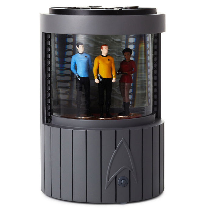 Star Trek™ Transporter Snow Globe With Light and SoundOf all the 23rd-Century technological wonders aboard the U.S.S. Enterprise, none has proven more useful and more captivating than the transporter chamber. Experience the transporting effects of light, sound and motion as first used in the original Star Trek television series with the push of a button. This interactive water globe features Captain Kirk, Mr. Spock and Lieutenant Uhura during a recreation of beam-down and beam-up sequences as featured in the classic science-fiction series. Makes a great gift for fans of the popular Sci-Fi TV series.