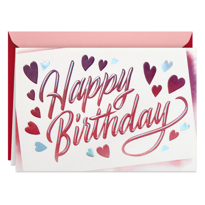 Valentine's Day birthday greeting card features embossed lettering and hearts with shiny silver holographic foil and glossy accents paired with a fun message.- Includes one card and one envelope with a Gold Crown seal. Envelope color may vary.